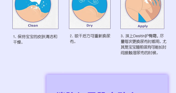 美國 Desitin寶寶新生兒護臀膏 嬰兒護臀霜 紫色加強型 預防尿布疹紅屁股—— 1.含40%的氧化鋅,油膏體比較厚重,涂上去厚厚的一層,比較像涂抹“白墻”。 2.何為護臀膏,就是要建立一個厚實的保護屏障阻隔濕氣和外面的有害物質。 |