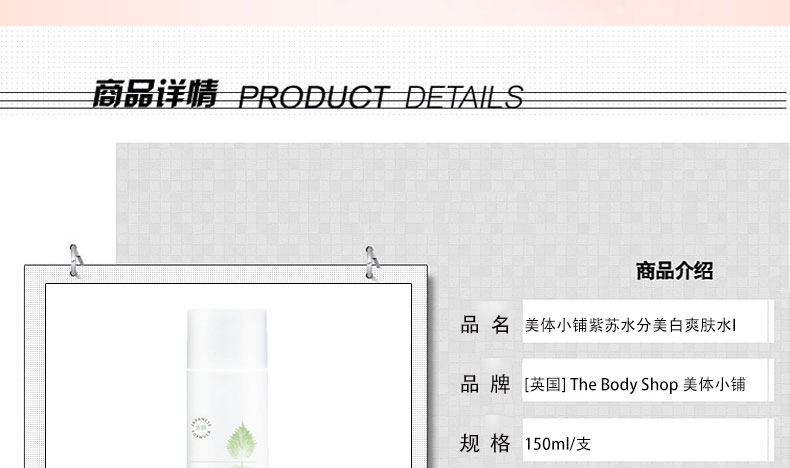 產品說明 英國 The Body Shop 美體小鋪紫蘇水分美白爽膚水I 提升皮膚亮度 舒緩潤澤肌膚 中性到油性肌膚適用 150ml——