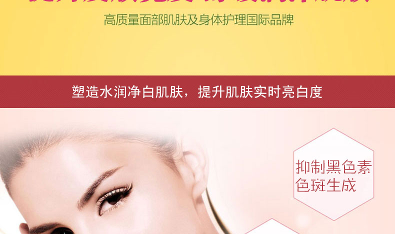 1.為肌膚提供補濕功效,塑造水潤凈白肌膚,大大提升肌膚實時亮白度。