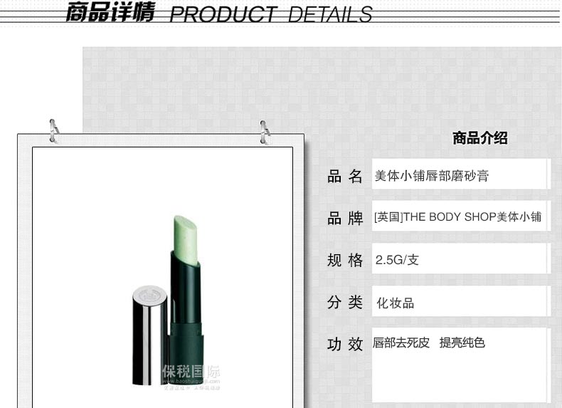 英國thebodyshop 美體小鋪去角質保濕磨砂護唇膏 磨砂膏 |