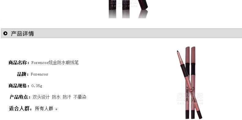 韓國forencos炫金防水眼線筆 千頌伊同款 雙頭 01Deepblack深黑色 —— 1.筆芯順滑,容易操作,不怕手抖。 2.旋轉式出筆芯,筆尖另一端有專門削筆尖小工具,貼心、方便。 |