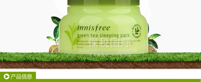 韓國 innisfree悅詩風吟 夜間修護面膜 綠茶睡眠面膜 美白補水免洗面膜 80ml—— 1.有機農綠茶水分和白色營養顆粒,使干燥的肌膚一夜之間充滿水分。 2.白色營養顆粒味天然糖類,優越的抗氧化效果使肌膚快速光澤清透。 3.在清凈健康的有機土壤栽培的綠茶成分,將肌膚表面水分也吸收到深層肌膚。 使用方法:潔面后,取適量本品涂抹于臉部及頸部,第二天清洗即可。 |