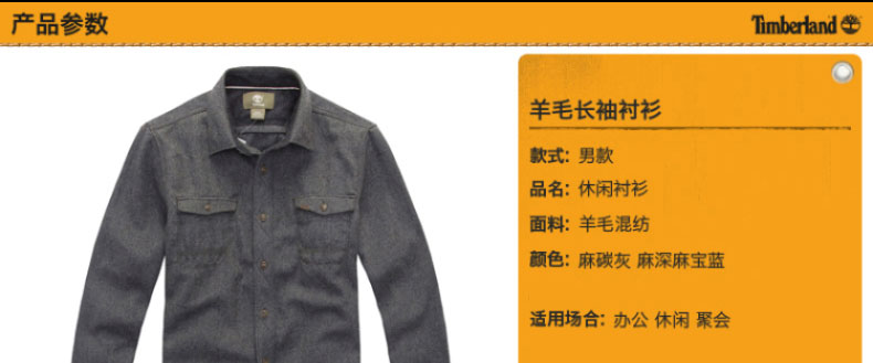 Timberland 添柏嵐 男裝 羊毛保暖長袖休閑襯衫 7309J |
