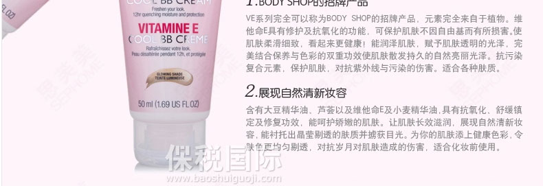 英國(guó) The Body Shop 美體小鋪維他命E水凝透薄BB霜? 補(bǔ)水遮瑕 打造自然膚色 50ml |