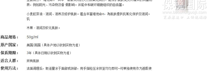| 權(quán)利聲明: 保稅國(guó)際的所有商品信息、客戶評(píng)價(jià)、商品咨詢等內(nèi)容,是保稅國(guó)際重要的經(jīng)營(yíng)資源,未經(jīng)許可,禁止非法轉(zhuǎn)載使用。 注:本站所有商品均為原裝進(jìn)口商品,境外直郵,全程海關(guān)監(jiān)管,假一罰十,對(duì)任何冒用保稅國(guó)際行銷的行為,本站將追究法律責(zé)任,請(qǐng)放心購(gòu)買。 |