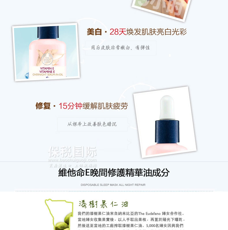 英國(guó) The Body Shop 美體小鋪維他命E晚間修護(hù)精華油 科研新品 高效補(bǔ)水不油膩 |