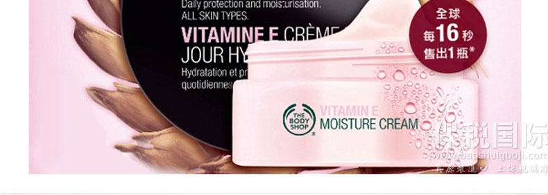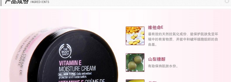 英國 The Body Shop 美體小鋪維他命E潤面霜? 質(zhì)感輕盈 深層滋潤 不油膩 50ml—— 1.容易吸收,為肌膚提供深層滋潤。 2.質(zhì)地有如潤膚露般輕盈,但具備乳霜的補濕功效,有助修護肌膚,令肌膚更柔軟潤澤。 |