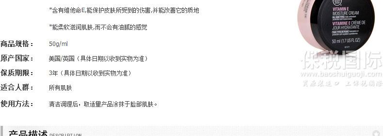 英國 The Body Shop 美體小鋪維他命E潤面霜? 質(zhì)感輕盈 深層滋潤 不油膩 50ml |