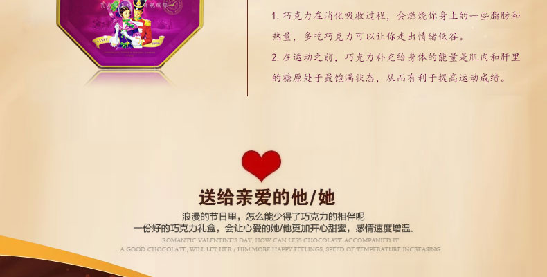 英國(guó) QUALITY STREET花街巧克力 朱古力禮盒 愛的甜蜜 唇齒留香—— 1.巧克力在消化吸收過程,會(huì)燃燒你身上的一些脂肪和熱量,多吃巧克力可以讓你走出情緒低谷。 2.在運(yùn)動(dòng)之前,巧克力補(bǔ)充給身體的能量是肌肉和肝里的糖原處于最飽滿狀態(tài),從而有利于提高運(yùn)動(dòng)成績(jī)。 |