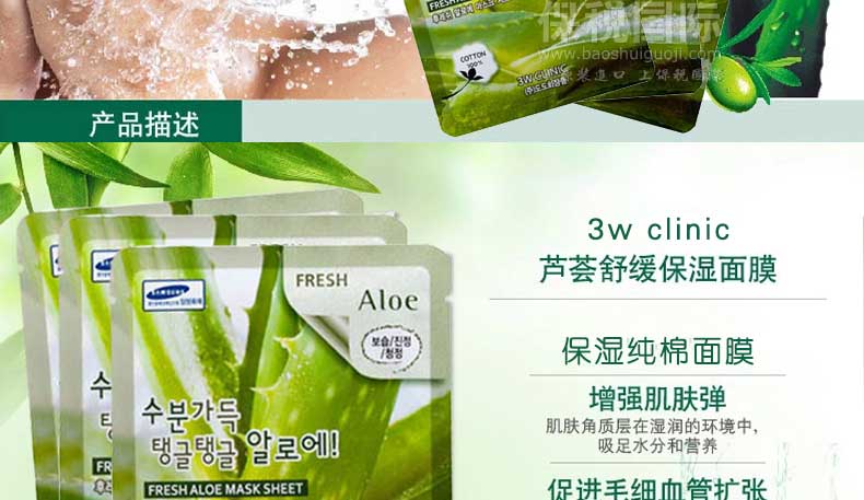 韓國(guó)三星3w clinic保濕純棉面膜 蘆薈面膜/美白精致面膜 鎮(zhèn)靜舒緩 保濕美白(10片/盒)—— 1.保濕滋潤(rùn),舒緩消炎,鎮(zhèn)靜皮膚,收斂毛孔,美白肌膚,明澄亮麗。 2.此款面膜富含蘆薈萃取液,天然的蘆薈萃取液含有多種維生素成分,能提供肌膚所需的水分與營(yíng)養(yǎng)。 |