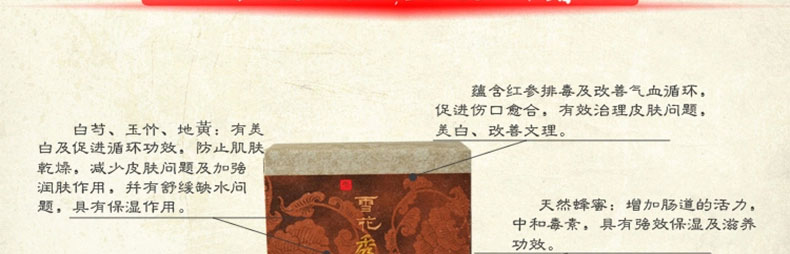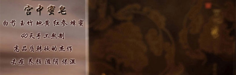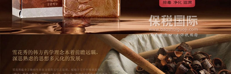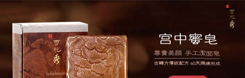 韓國(guó)雪花秀 宮中蜜皂 送皂盤 祛痘保濕排毒 兩塊裝—— 1.蘊(yùn)涵東醫(yī)寶鑒和本草綱目中記載的,具有清潔和柔軟肌膚作用的韓方植物—玉竹、白芍、地黃等。 2.將其熬制而成的湯中加入了純天然橄欖油和蜂蜜成分,經(jīng)過傳統(tǒng)手工制造出了高品質(zhì)美容香皂。 |