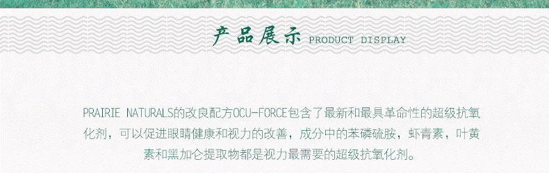 加拿大OCU-Force Softgel 60's? 大草原好視力膠囊(60粒/瓶)—— PRAIRIE NATURALS品牌的產(chǎn)品依據(jù)《加拿大聯(lián)邦天然保健品立法規(guī)則(NHPR)》生產(chǎn),原材來源于地廣人稀的加拿大,沒有任何污染。純植物提取。不含任何化學成分。 使用說明:若服用其他藥物,請于之前或之后幾小時再服用本藥物。 |