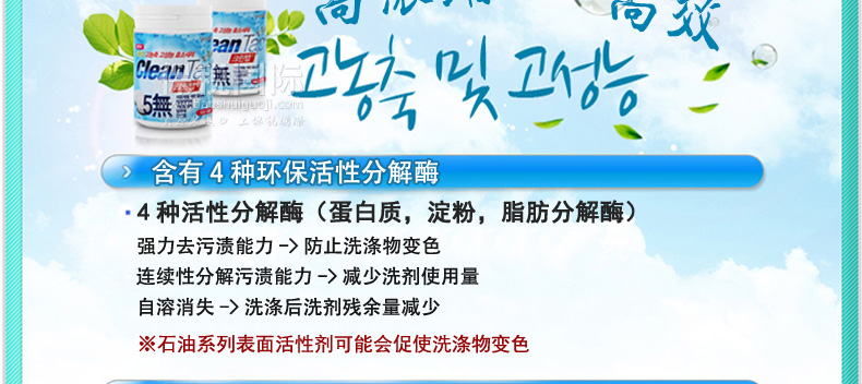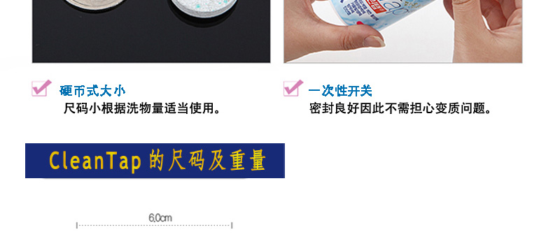 韓國CleanTap藥丸式洗滌劑 保管方便 去污力強3g/粒*50—— 1.無添加石油系列表面活性劑。 2.無添加熒光增白劑。 3.無添加磷酸鹽。 |