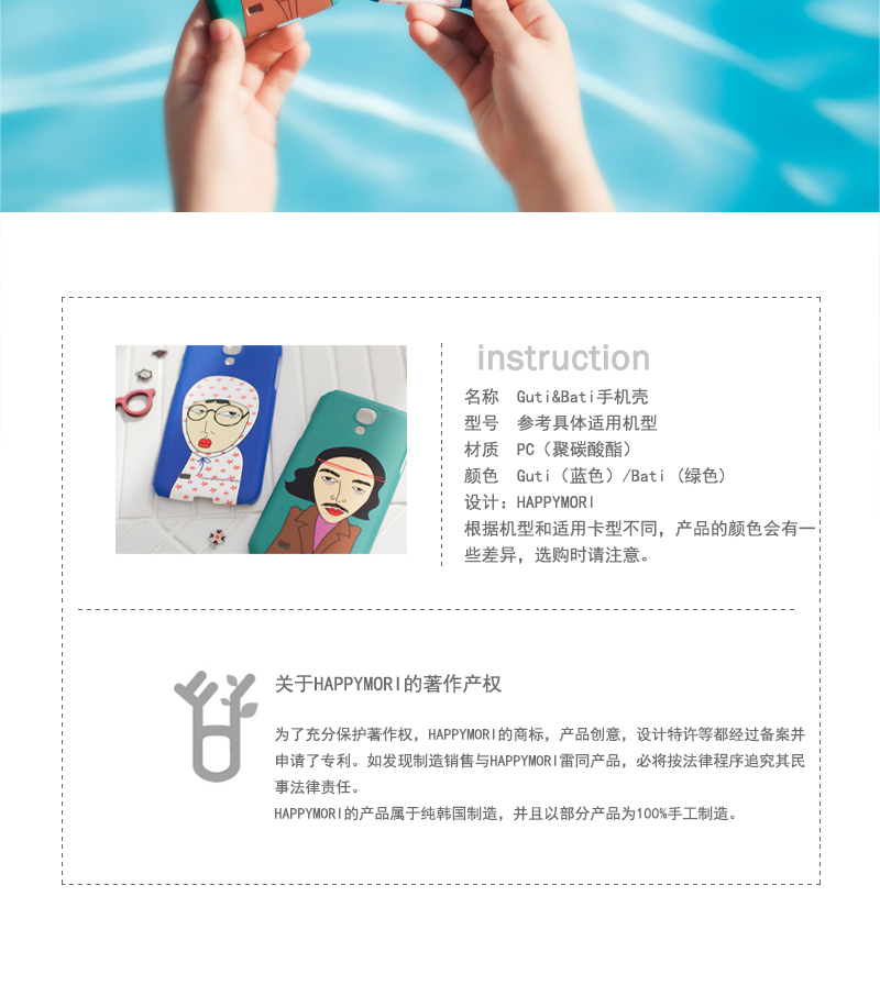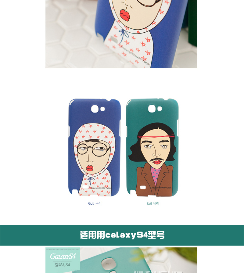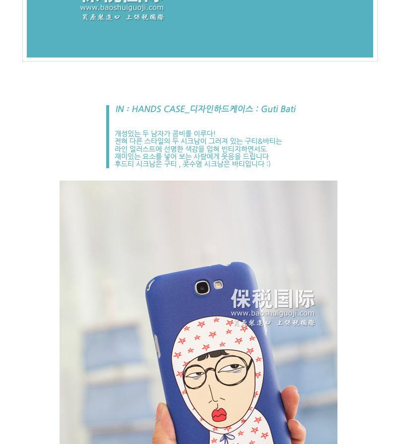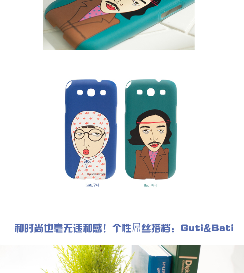 韓國Happymori個性屌絲搭檔Guti&Bati之Guti手機殼(藍色)—— 1.PC材質,耐熱,耐沖擊,抗摔,且不易變形 2.設計簡約,大方,充滿個性! 3.完全不同風格的個性屌絲搭檔,既凸顯懷舊風格又顯的幽默滑稽。 備注:硬質材料在大的沖擊下容易破損,使用時請格外注意! |