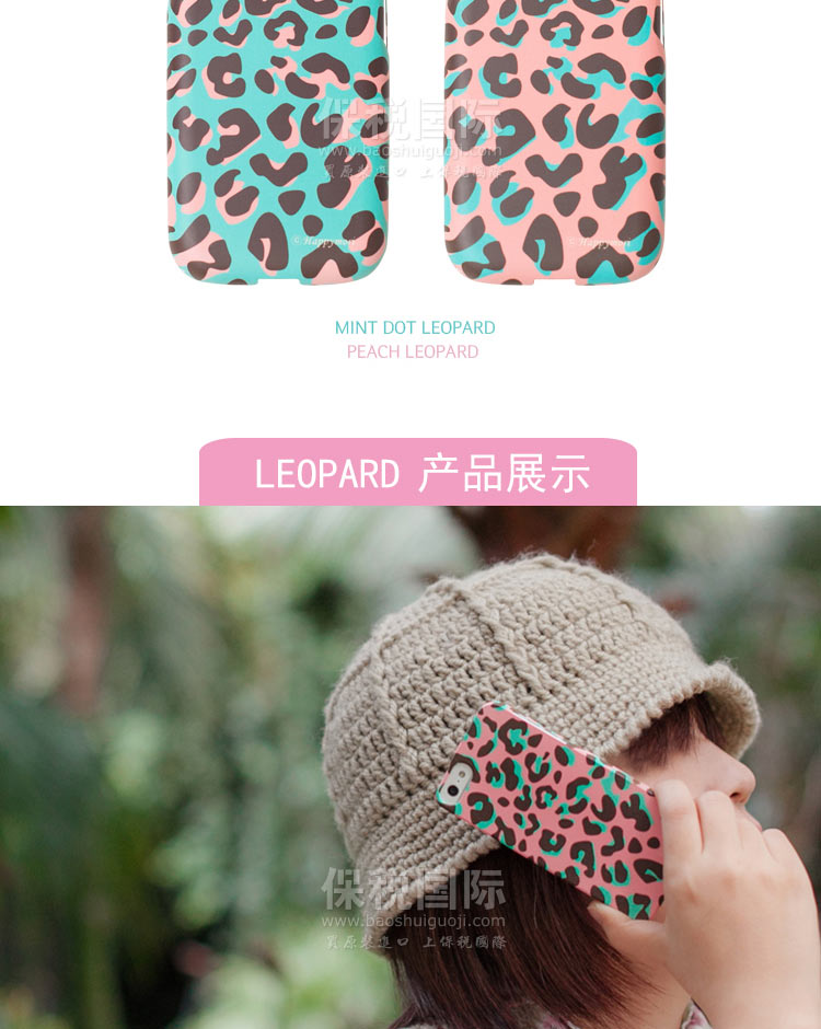 韓國Happymori“Leopard”藍綠色手機殼—— 1.PC材質,耐熱,耐沖擊,抗摔,且不易變形 2.設計簡約,大方,充滿朝氣! 3.可愛又不失性感的“Leopard”手機殼系列,演繹您的美麗與清爽。 備注:硬質材料在大的沖擊下容易破損,使用時請格外注意! |