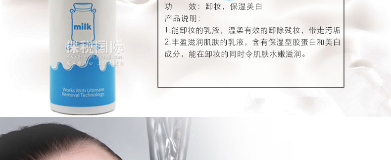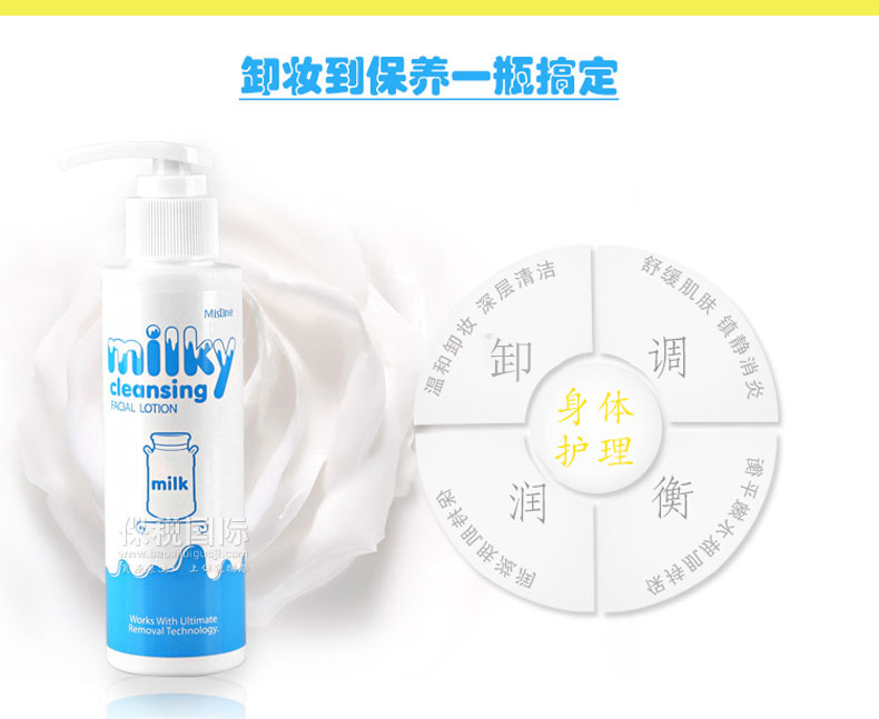 泰國 Mistine 牛奶卸妝乳 清爽卸妝不油膩 滋潤不緊繃卸妝水100ml/瓶—— 1.能卸妝的乳液,溫柔有效的卸除殘妝,帶走污垢。 2.豐盈滋潤肌膚的乳液,含有保濕型膠蛋白和美白成分,能在卸妝的同時令肌膚水嫩滋潤。 |