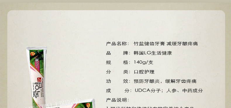 韓國LG生活健康 竹鹽健齒牙膏 減緩牙齦疼痛 140g/支 |