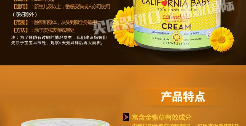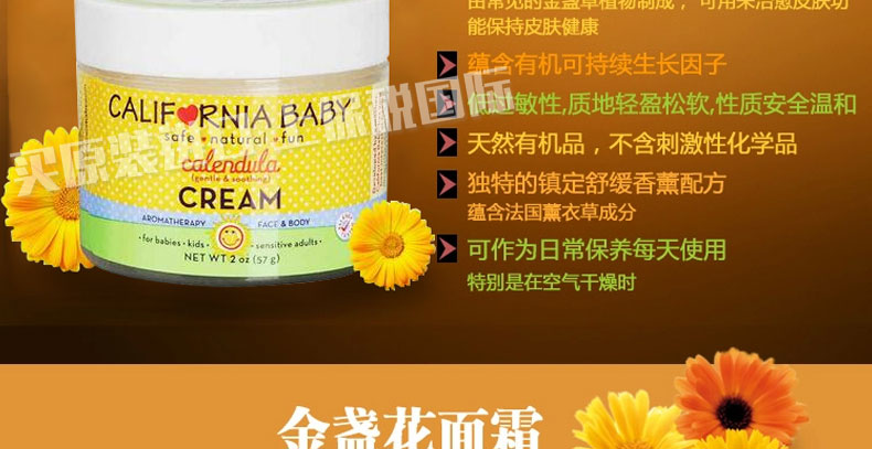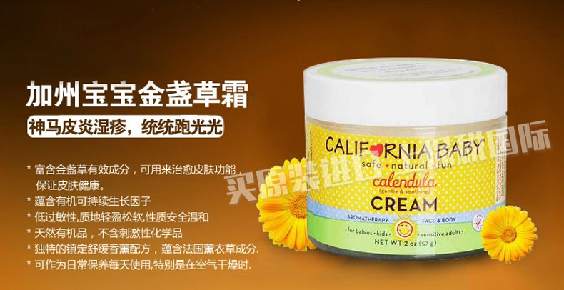 美國(guó) California Baby/加州寶寶? 金盞花寶寶面霜 預(yù)防緩解濕疹 57g/瓶? |