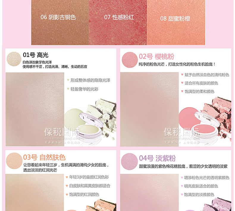 3.添加4種中草藥提取物成分的腮紅,輕薄柔軟的涂在皮膚上,賦予生動光澤感的粉餅類型。時間久了也會保持清透自然的顏色,一整天賦予生動可愛的效果。