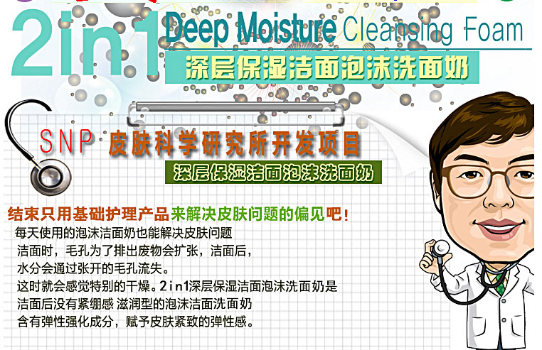 韓國(guó)藥妝SNP 保濕彈力2合1 深層保濕潔面泡沫洗面奶 150ml |