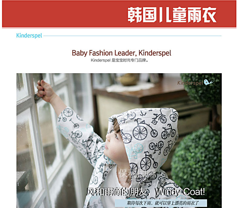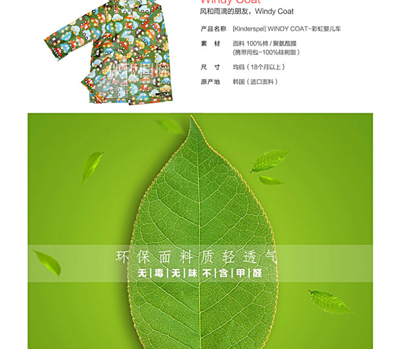 韓國(guó)Kinderspel WINDY COAT寶寶風(fēng)衣/雨衣/外套-彩虹嬰兒車(chē)圖案 |
