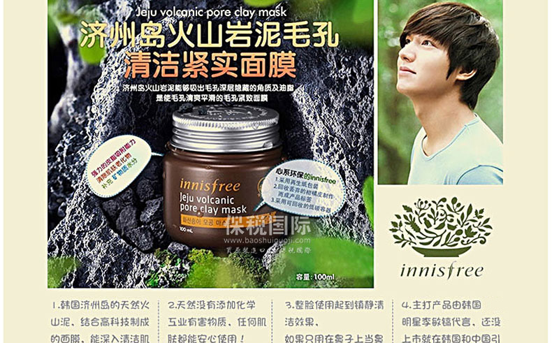 韓國innisfree/悅詩風吟 濟州島火山巖泥毛孔清潔去黑頭面膜 100ml/瓶 |