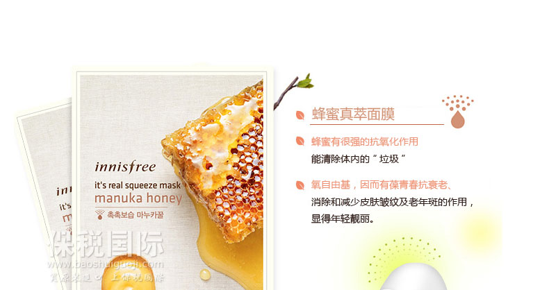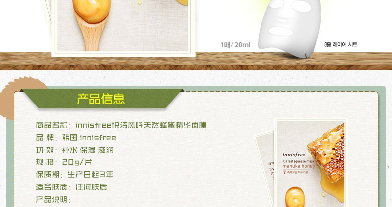 韓國 innisfree悅詩風(fēng)吟天然蜂蜜精華面膜 20g/片 |