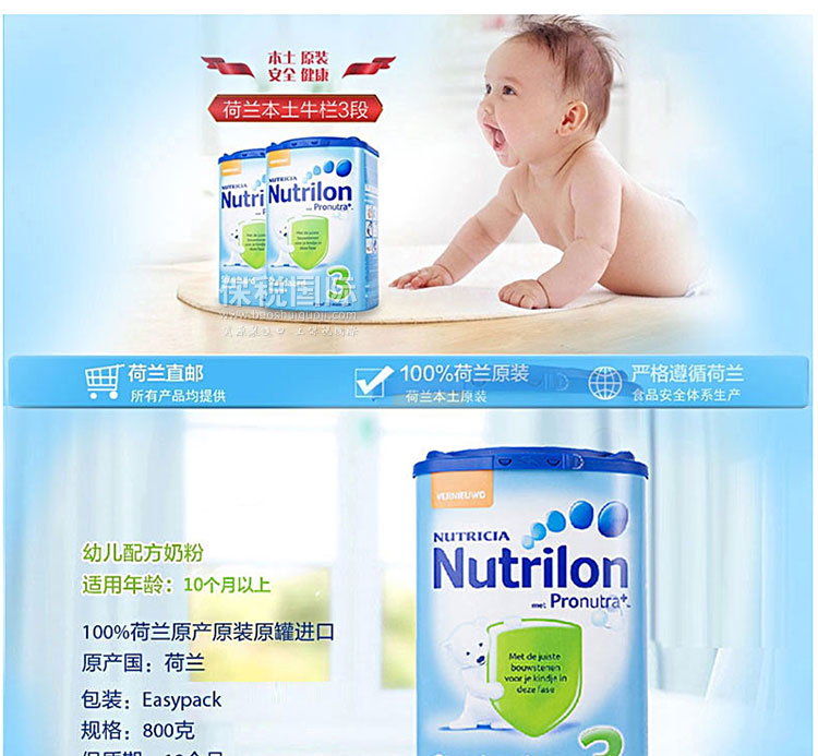 荷蘭原裝進口正品 Nutrilon牛欄本土嬰兒奶粉3段 800g/罐 |