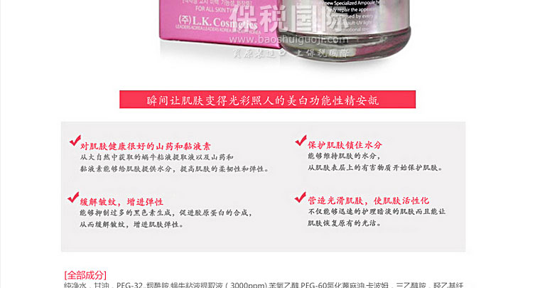 | 品 牌 | 韓國BERGAMO | 產品功效 | 美白抗衰老 | |
