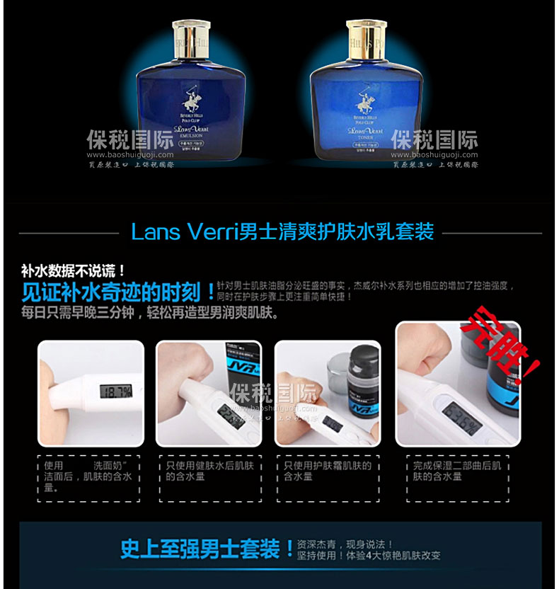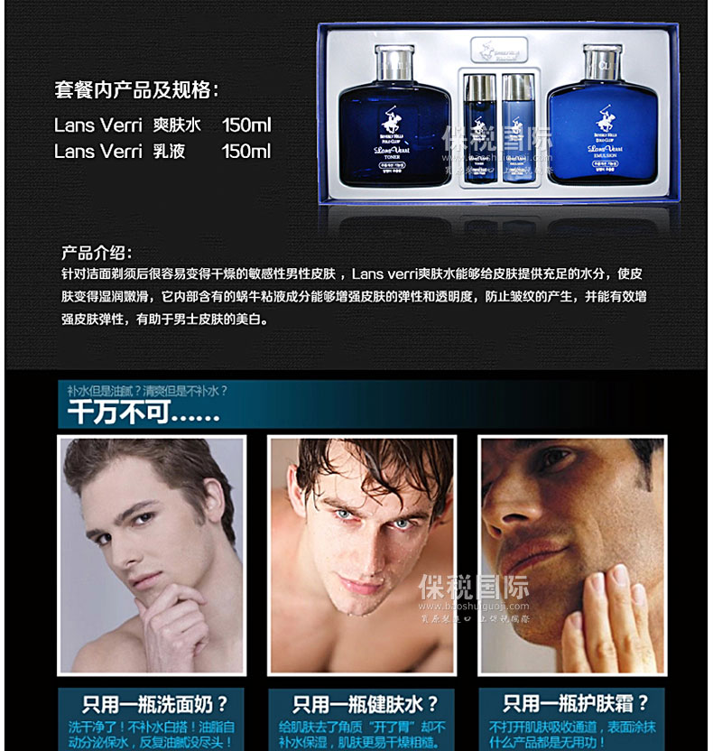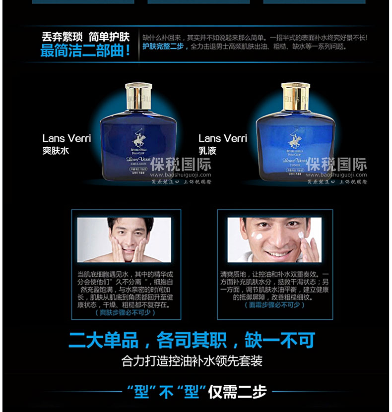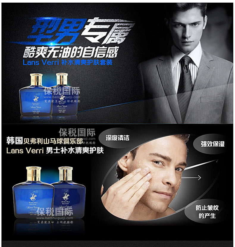 商品名稱 | 韓國貝弗利山馬球俱樂部Lans Verri 男士補水清爽護膚水乳套裝150ml*2瓶 | ||