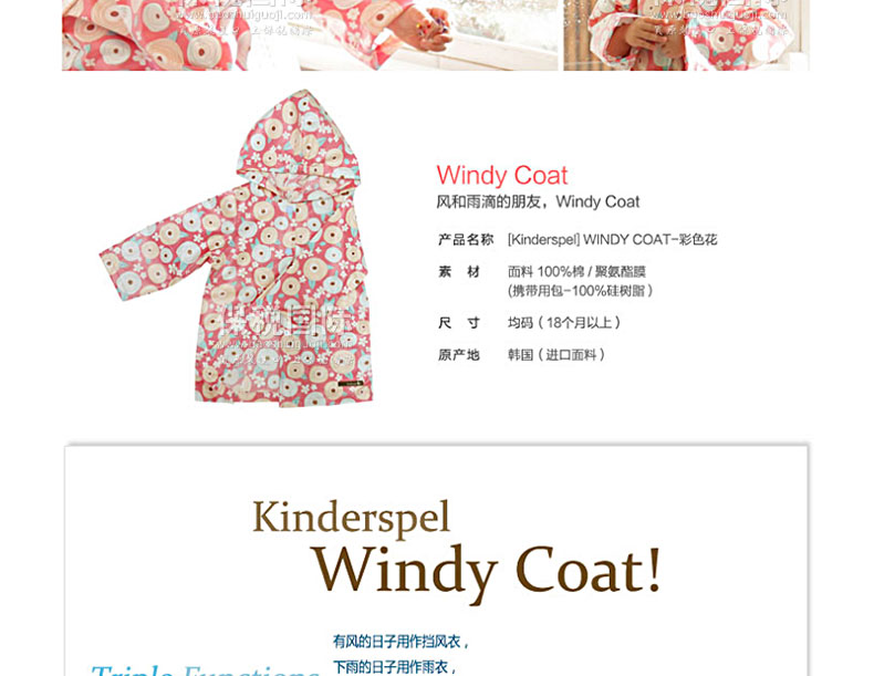 韓國Kinderspel WINDY COAT寶寶風衣/雨衣/外套-彩色花圖案 |