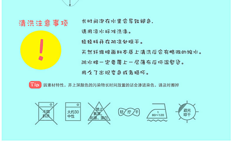面料1 100%棉 面料2 100%棉,PU膜 |