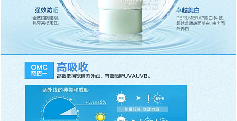 | 產品說明 | 韓國Atomy 艾多美 全效美白隔離防曬霜 60ml—— 1. 紫外線(UVA/UVB)雙重隔離。 2. 細膩的親膚性和不黏膩的質感。 3. 無白濁現象,光滑肌膚。 4. 有/無機防曬霜的雙重過濾效果。 5. 無4種添加物>混合處方。 | |||