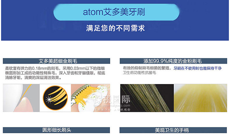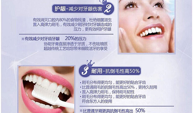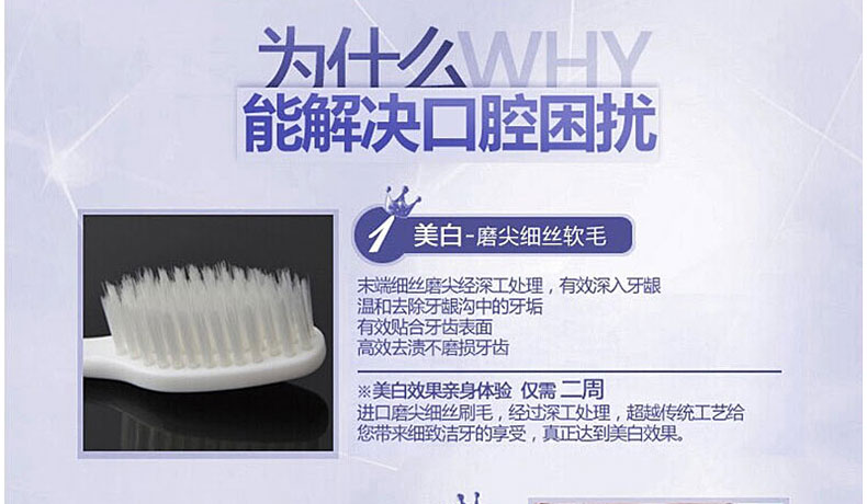 功 效 | 柔軟超細刷毛,深入牙齒和牙齦縫隙,溫柔的去除牙垢,金粉抑制細菌的繁殖 | |