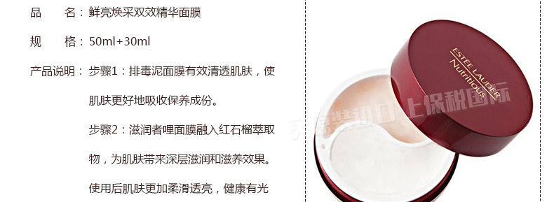 個護化妝> 面部護理> 護膚套裝> 雅詩蘭黛 Estee Lauder 紅石榴面膜 鮮亮煥采雙效精華面膜 50ml+30ml