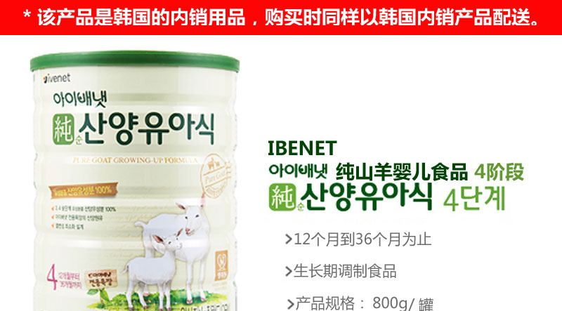 韓國原裝進(jìn)口 愛唯一 嬰幼兒天然 純山羊奶粉 4段 800g |