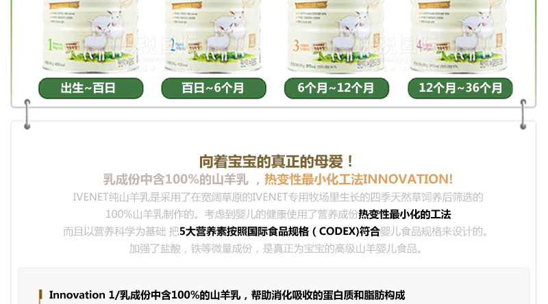 韓國原裝進(jìn)口 愛唯一 嬰幼兒天然 純山羊奶粉 4段 800g— 1. 愛唯一純山羊奶粉在新西蘭享有愛唯一的專用牧場。 2. 使用四季自然牧草飼養(yǎng)的健康山羊原乳,采用最大降低營養(yǎng)成分的熱變性工法,關(guān)注嬰兒健康。 3. 依據(jù)CDDEX配方食品營養(yǎng)規(guī)格而設(shè)計,是一款增強(qiáng)葉酸、鐵粉等的高端山羊奶粉。 4. 適合12個月-36個月的寶寶食用。 |