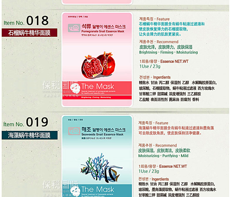 馬格利米酒補水美白保濕面膜 | 產品產地 | 韓國 | |