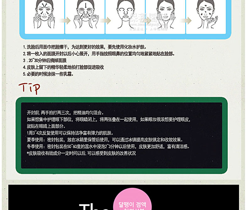韓國Arang活膚煥彩馬格利米酒補水美白保濕面膜10片裝—— 隨著那一抹輕盈的沁入,每個細胞都喝飽水,輕薄透氣的質地,在滋 養肌膚的同時,還可以讓肌膚深呼吸。于輕柔按摩間,溫軟潤澤悄然釋放。如此清新、粉潤的臉龐,不 禁時時輕撫,喜悅直達心靈深處。 使用方法:潔面后先使用爽膚水整頓肌膚,然后取出面膜貼貼 于面部,過15-20分鐘后將面膜貼揭下,用手輕拍殘留在臉上的精華液,使精華液全部吸收。 |