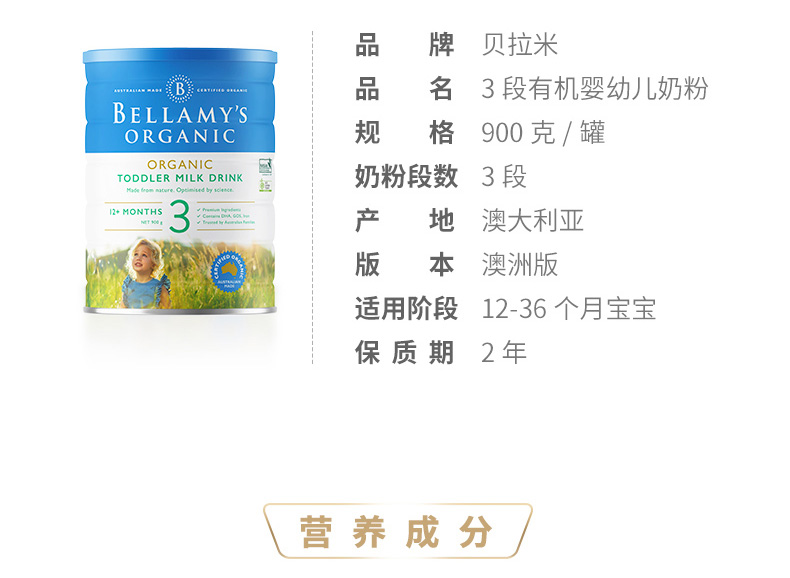 - 品牌:澳大利亞Bellamy’s/貝拉米