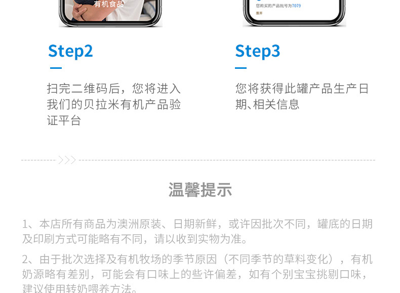澳大利亞原裝進口 Bellamy’s/貝拉米嬰幼兒有機奶粉3段 2罐裝—— 1. 保證不喂養人工飼料 - 確保無激素殘留! 2. 保證不使用抗生素 - 確保無抗生素殘留! 3. 保證農場不使用殺蟲劑 -確保無毒素殘留! 4. 保證無轉基因成份 - 確保無該問題引起的不可預知后果! 5. 保證土壤不定期檢測 - 確保無重金屬污染! 6. 保證不含麩質面筋 - 確保不容易過敏! 7. 保證不使用生長激素 - 確保寶寶不早熟! |