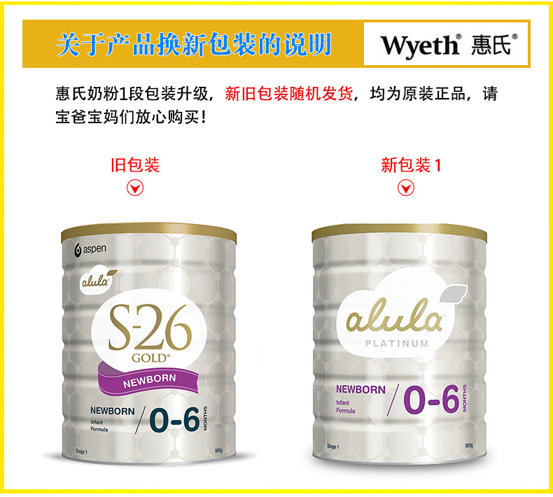 新西蘭原裝進口 S26惠氏金裝嬰兒奶粉1段 0-6個月 900g/罐 |