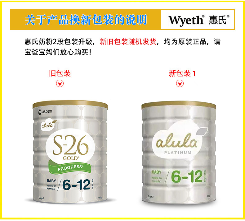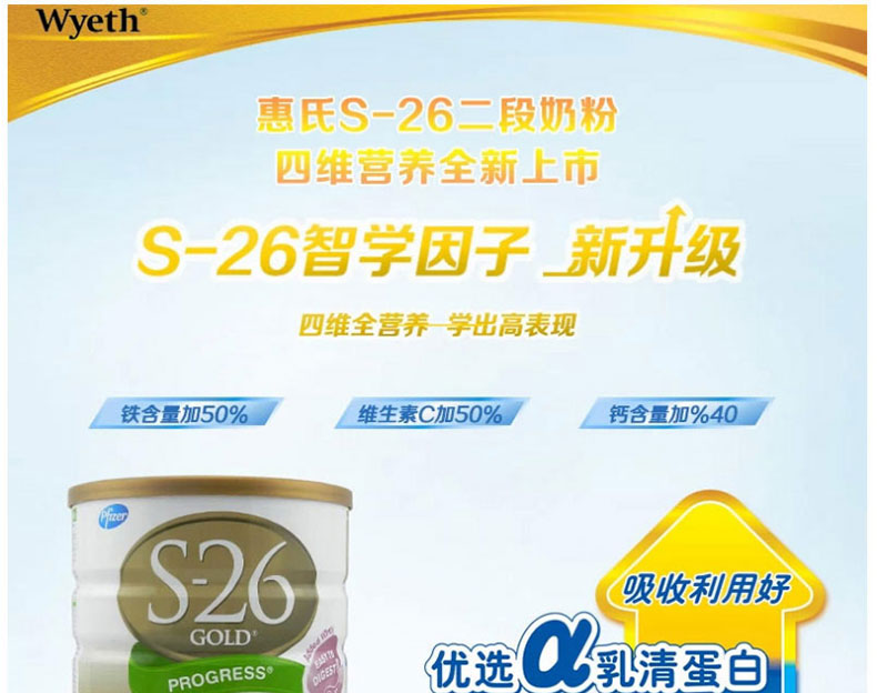 新西蘭原裝進口 S26惠氏金裝嬰兒奶粉2段 6-12個月 900g/罐 |