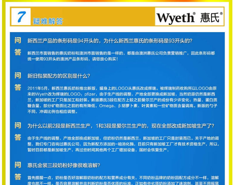 | 品 牌 | 惠氏/Wyeth | 奶 源 | 新西蘭 | |