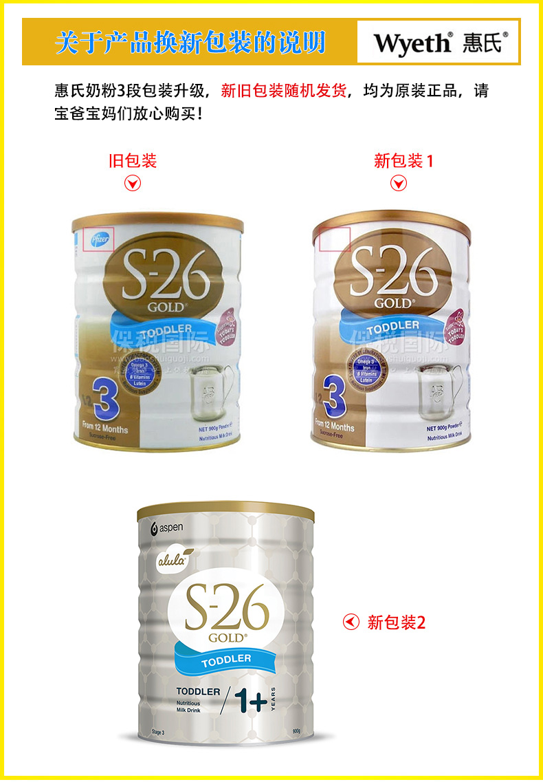 新西蘭原裝進(jìn)口 S26惠氏金裝嬰兒奶粉3段 1歲以上寶寶 900g/罐 |