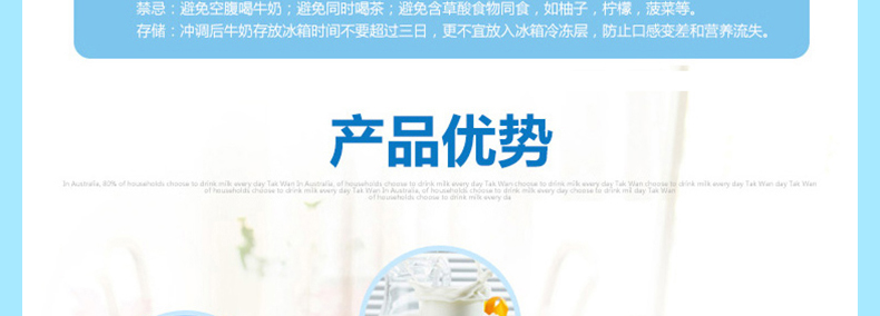 澳大利亞原裝進(jìn)口 Devondale德運(yùn) 高鈣成人全脂奶粉 1000g/袋—— 1. 德運(yùn)高鈣奶(高鐵、高鈣、高維C和D)富含鐵質(zhì)、維他命C和D維C可以幫助人體提高免疫力遠(yuǎn)離疾病,提高人體機(jī)。 2. 有實(shí)驗(yàn)證明維C可以幫助嗜煙的人群消除體內(nèi)的尼古丁,可以幫助女性減少色斑增加肌膚亮度。 3. 被稱為“陽(yáng)光維生素”的維生素D,可有有效預(yù)防心臟病、肺病、癌癥、糖尿病、高血壓、精神分裂癥等。 4. 這款營(yíng)養(yǎng)全面的牛奶適用于全家人享用。 |