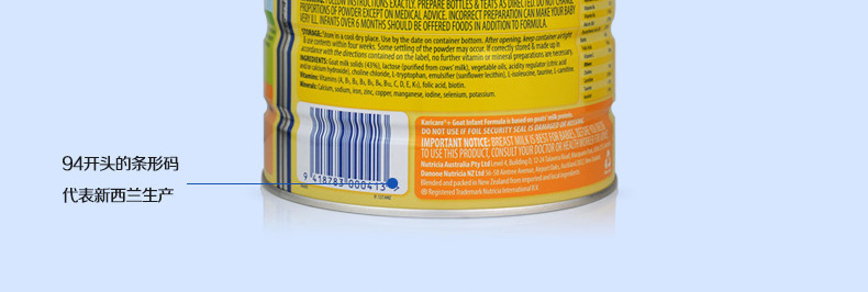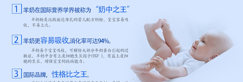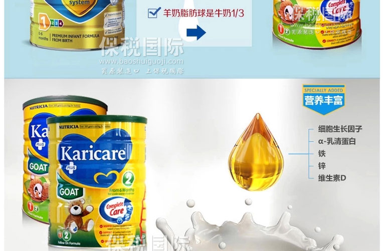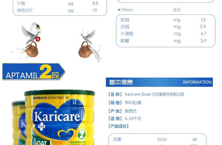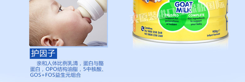 原裝進口 可瑞康 防過敏羊奶粉1段 適合0-6個月寶寶900g/罐 —— 1. Karicare可瑞康山羊奶嬰兒奶粉是一種以羊奶為基礎的嬰兒奶粉。 2. 羊奶接近人奶,含有天然的核苷酸,可形成軟凝乳幫助消化 不熱氣 不易引起過敏,對皮膚過敏者特別適用。 3. 羊奶在國際營養學界,羊奶的脂肪顆粒體積為牛奶的三分之一,更利于人體吸收,并且長期飲用羊奶不會引起發胖。 4. 羊奶中的維生素及微量元素明顯高于牛奶,美國、歐洲的部分國家均把羊奶視為營養佳品,歐洲鮮羊奶的售價是牛奶的7倍。 5. 專家建議患有過敏癥、胃腸疾病、支氣管炎癥或身體虛弱的人群以及嬰兒更適宜飲用。 |