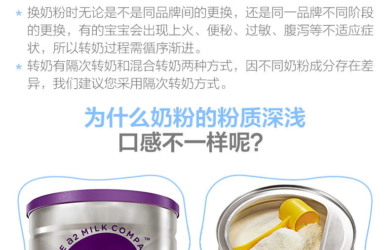 2罐裝 新西蘭原罐原裝進口 A2高端嬰幼兒配方牛奶粉3段 —— 1. a2奶粉是全球僅含有A2 β-酪蛋白奶粉(與母乳同為A2型酪蛋白),非常珍惜獨特的奶源【全球只有百分之30的奶牛是a2奶牛】。 2. 幫助寶寶消化系統發育,而且清淡不上火。 3. a2奶粉和它生產的牛奶在澳洲和新西蘭都是針對高端貴族,很多澳洲家庭都會選擇a2的全脂和脫脂牛奶作為他們日常中的奶制品。 4. 澳洲家庭醫生和社區護士也會推薦母乳寶寶在斷奶后飲用a2品牌的鮮奶。 |