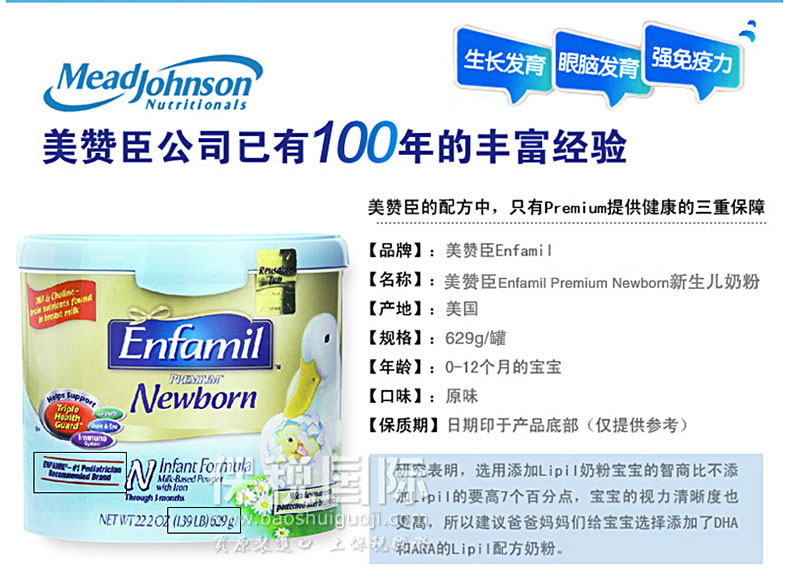 | 品 牌 | 美國Enfamil/美贊臣 | 產 地 | 美國 | |