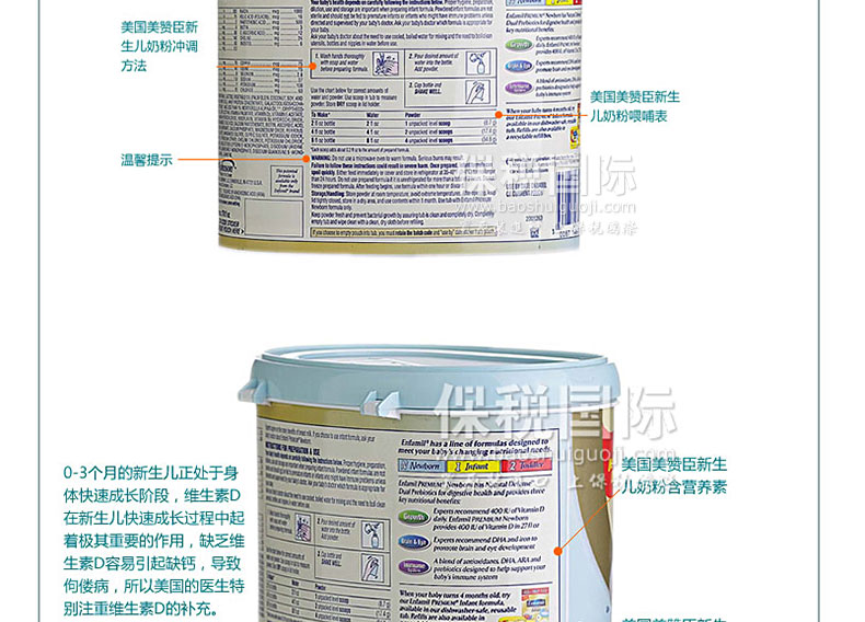 美國原裝進口 Enfamil美贊臣 Premium Newborn新生兒專用奶粉 629g/罐*2—— 1. 新生兒在他們出生的頭一個月,每個星期長1/4英寸。 2. 作為Enfamil制造者,我們清楚的知道維生素D是支持寶寶們早期生長的關鍵營養元素。 3. 美國兒科研究院(American Academy of Pediatrics)推薦每天攝入400 IU的維生素D。 4. Enfamil PREMIUM Newborn 每27 floz提供400 IU的維生素D ,非常接近0-3個月的新生兒每天大約需要的攝取量。 5. 獨特的配方奶粉還含有幫助寶寶自身防御的自然防御雙益生菌配方設計(Natural Defense Dual Prebiotic Blend)。 6. 易于消化的蛋白質對寶寶的腸胃提供溫柔的呵護。 |